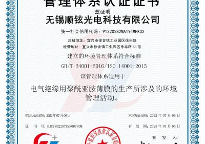 • 無(wú)錫順鉉光電環(huán)境管理體系認(rèn)證證書(E)